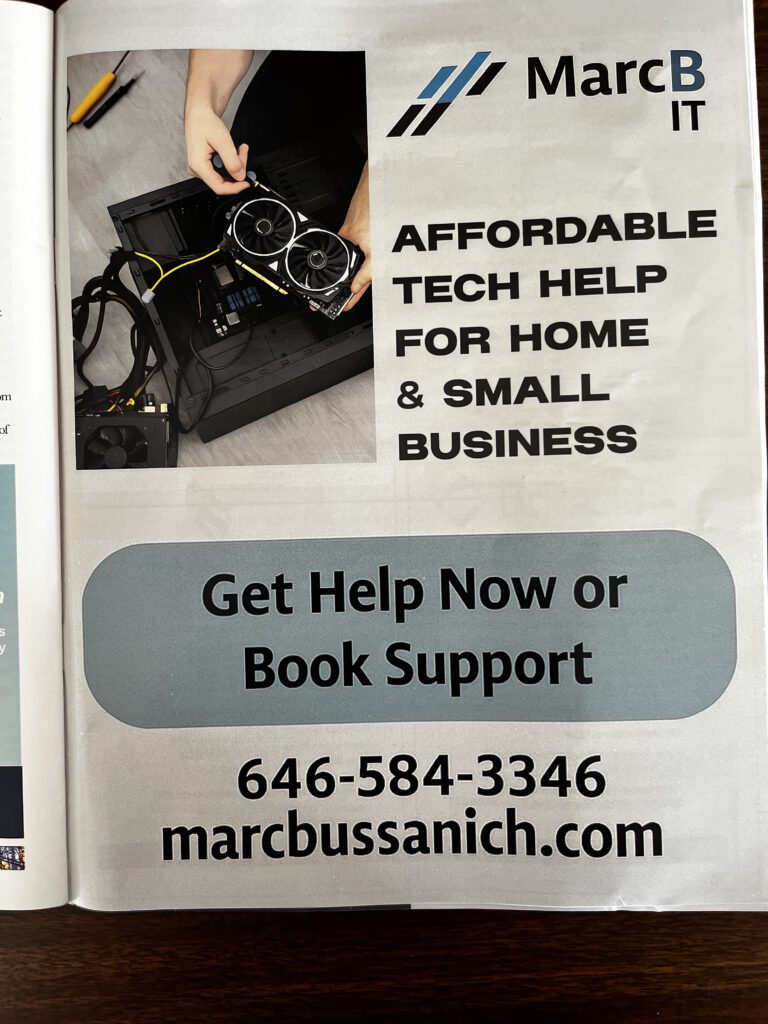 If you’re in the New Rochelle area and receive the Bulletin, keep an eye out for the ad—and if you or someone you know needs help with their tech setup, don’t hesitate to reach out.